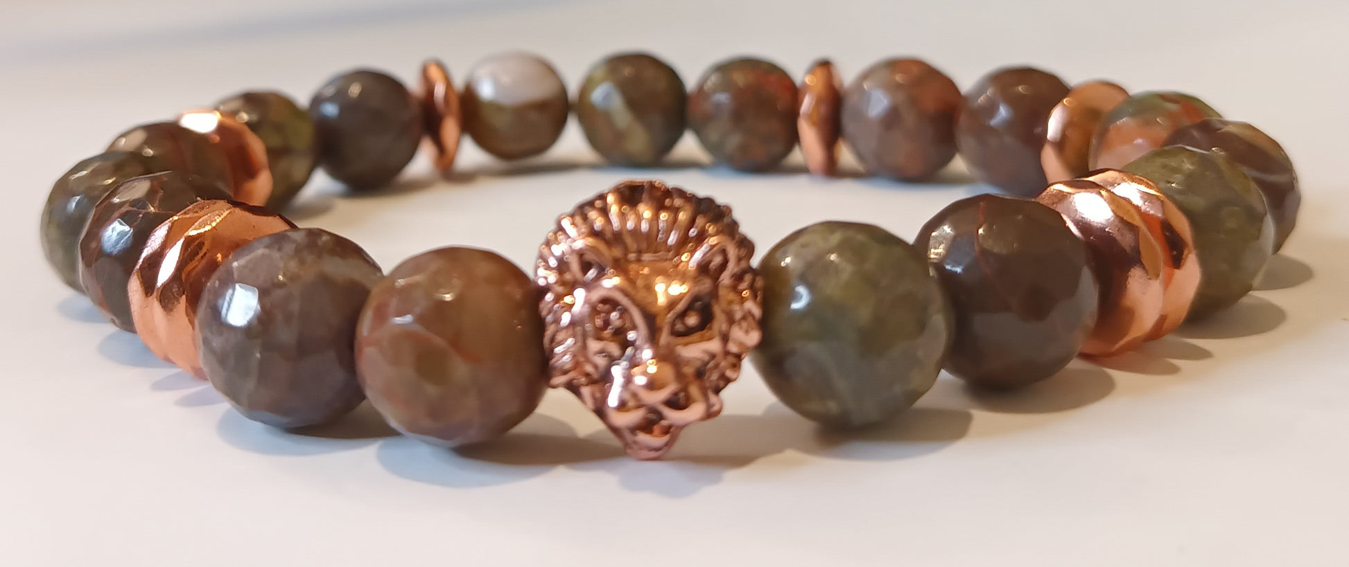 Single gemstone beaded bracelet accented with a pave lion head focal bead.
