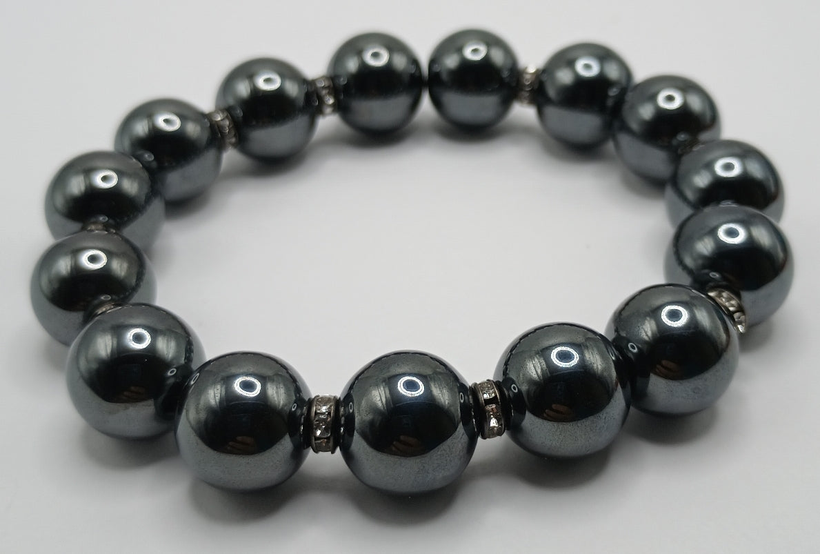 Elevate your style with our Grit & Grandeur 5 bracelet. Crafted with a large 14mm single gemstone beaded design, the bracelet features Black Hematite for a bold and luxurious look. Add a touch of sophistication to any outfit with this stunning accessory.