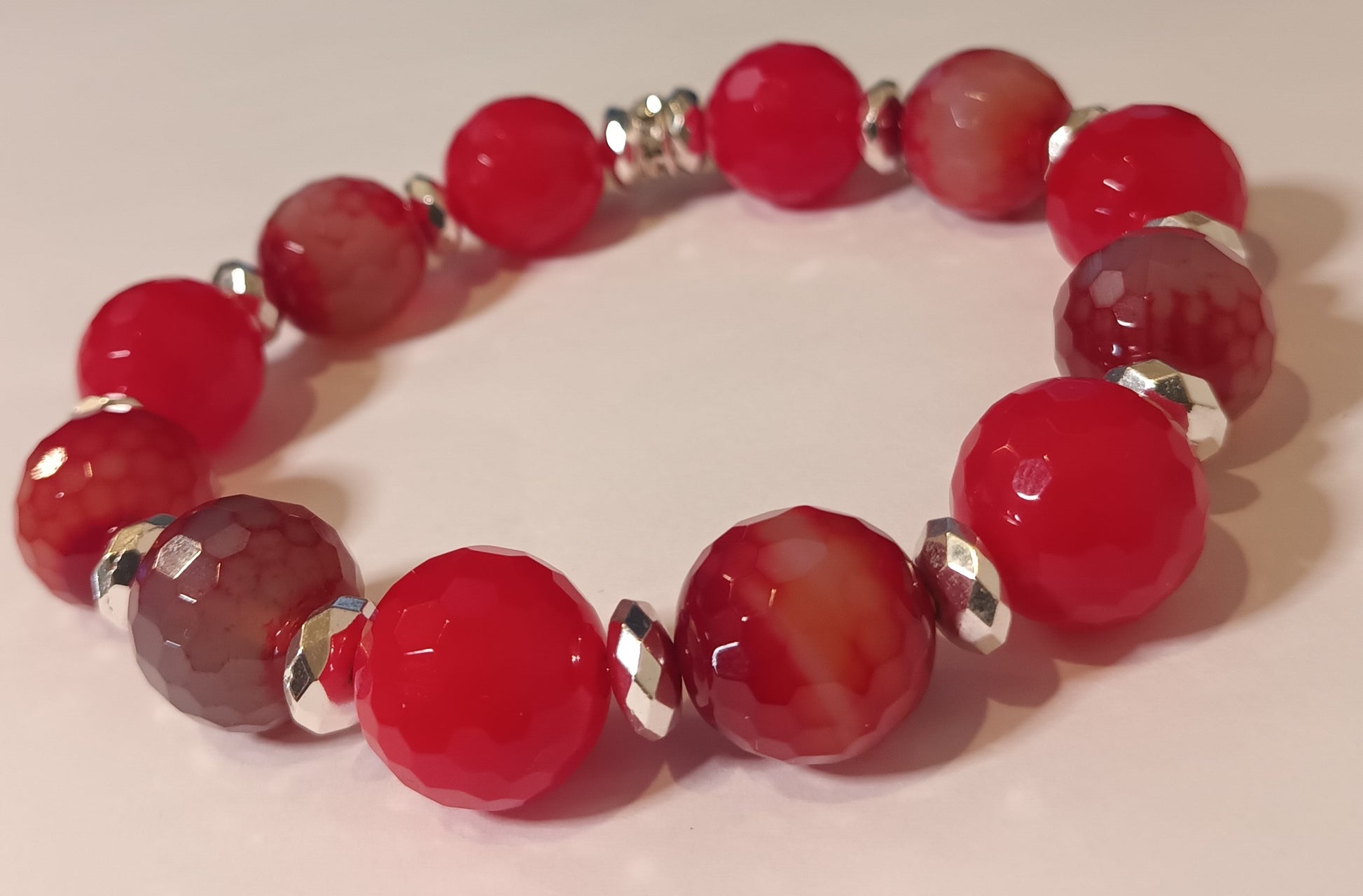 Single Chunky luxury gemstone beaded bracelet made with Hematite and Agate including large focal bead.