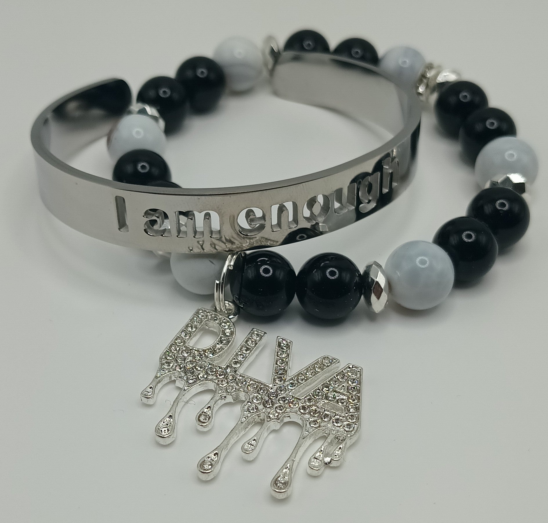 Get ready to dazzle with these stunning beaded and stainless steel I AM ENOUGH cuff bracelets. Made with Onyx & Agate gemstone beads and stainless steel these pieces are a must-have!!! Where them together or separately!