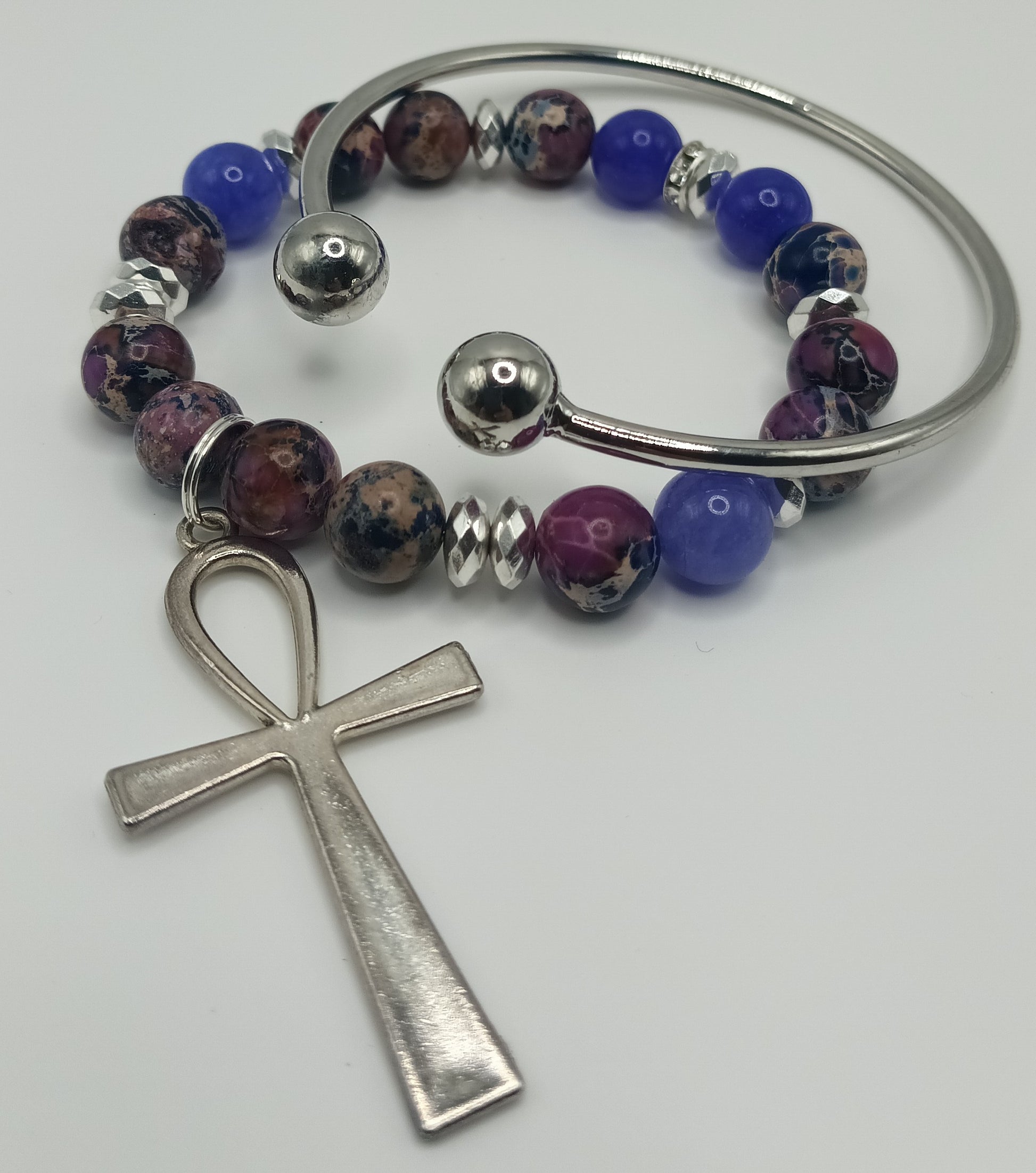 Get ready to dazzle with these stunning beaded and stainless steel cuff bracelets. Made with Purple Sea Jasper, purple Jade & Hematite gemstone beads and stainless steel. These pieces are a must-have!!! Where them together or separately!