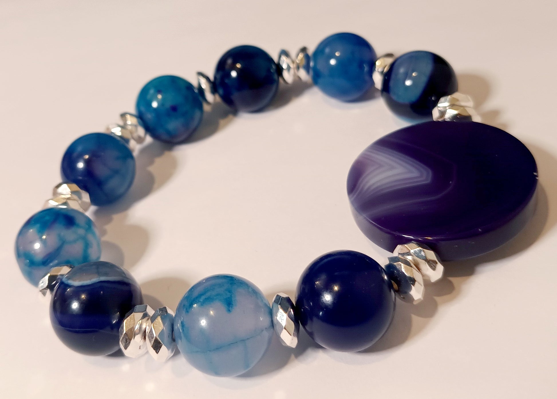 Single chunky gemstone beaded bracelet made with Purple Agate, Jade, hematite, accented in gold with focal stones!