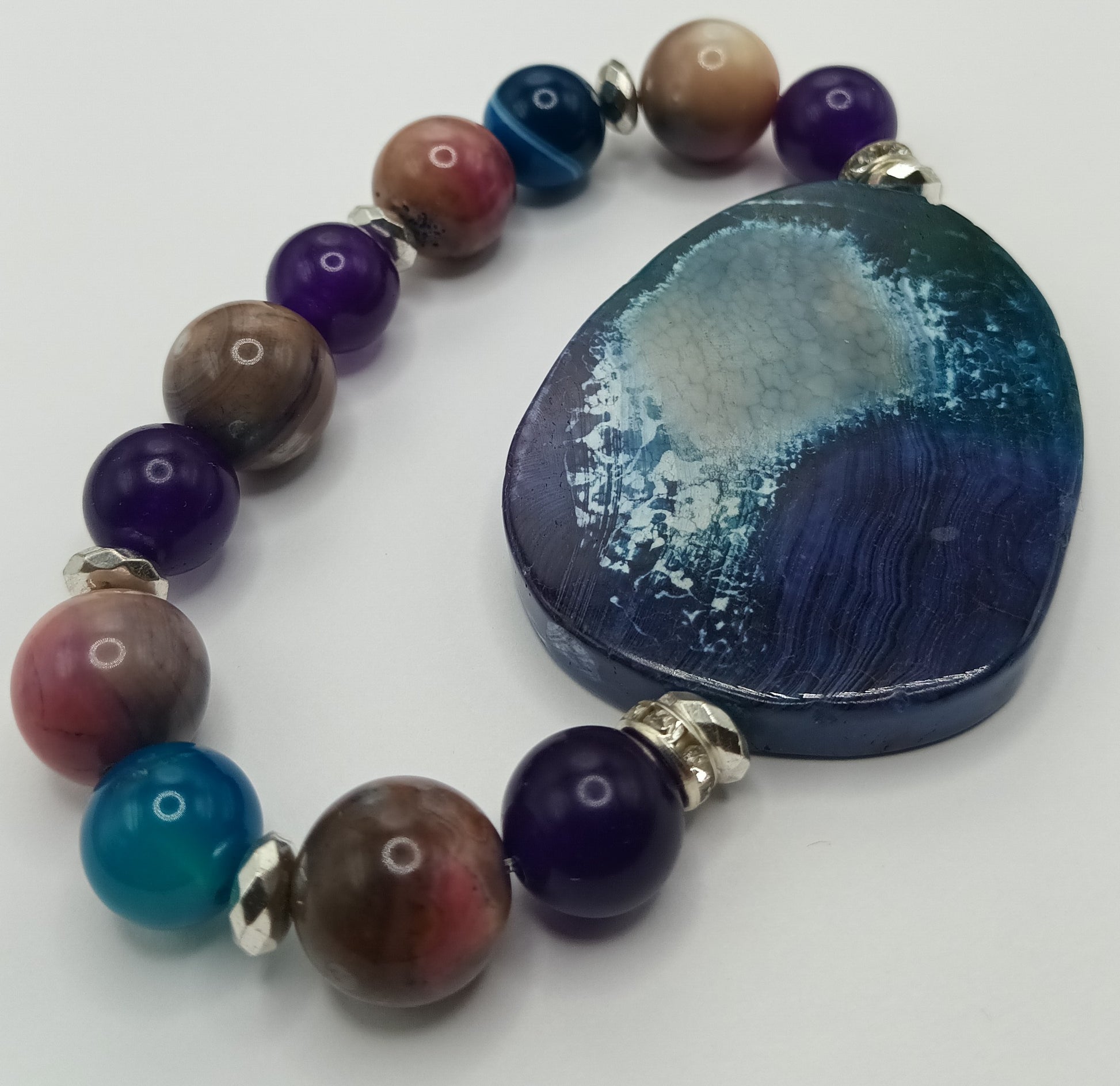 Single chunky gemstone beaded bracelet made with Purple Agate, Jade, hematite, accented in silver with focal stones!